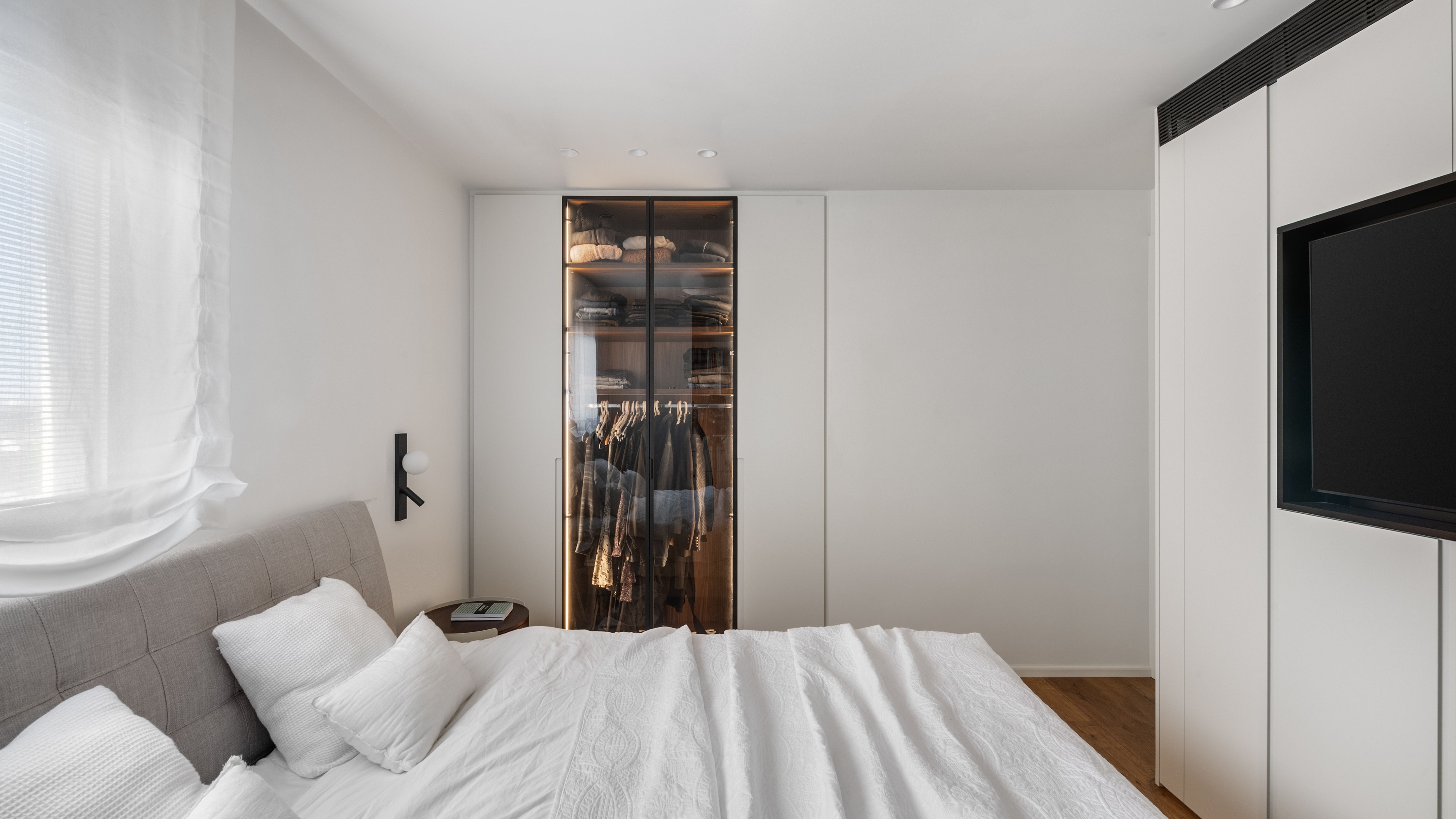 נגרות היקפית בחדר שינה היא לא רק בחירה עיצובית, אלא פתרון תכנוני מורכב. במקרים רבים, הקירות אינם אחידים: עומקים משתנים, נישות, פתחים ומגבלות קיימות. במקום “להתאים” רהיטים למציאות הזו, הנגרות מתוכננת כך שתאחד אותה. ארונות בעומקים משתנים, יחידת טלוויזיה שמשתלבת בתוך המערכת, ושידות צד שממשיכות את הקו  – כולם מתוכננים כחזית אחת רציפה, שמסתירה את המורכבות שמאחוריה. כך מתקבל חדר שבו הכול נראה מדויק ושקט, אבל בפועל,  מדובר במערכת שמתמודדת עם תנאים לא אחידים ומייצרת מהם סדר.