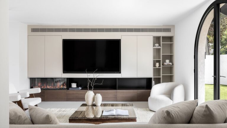 חיפוי קיר משולב עם שידת טלוויזיה