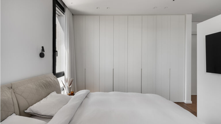 ארון מעוצבים בגוון לבן לחדר השינה | עיצוב: מלי לוי | צילום: אורן עמוס