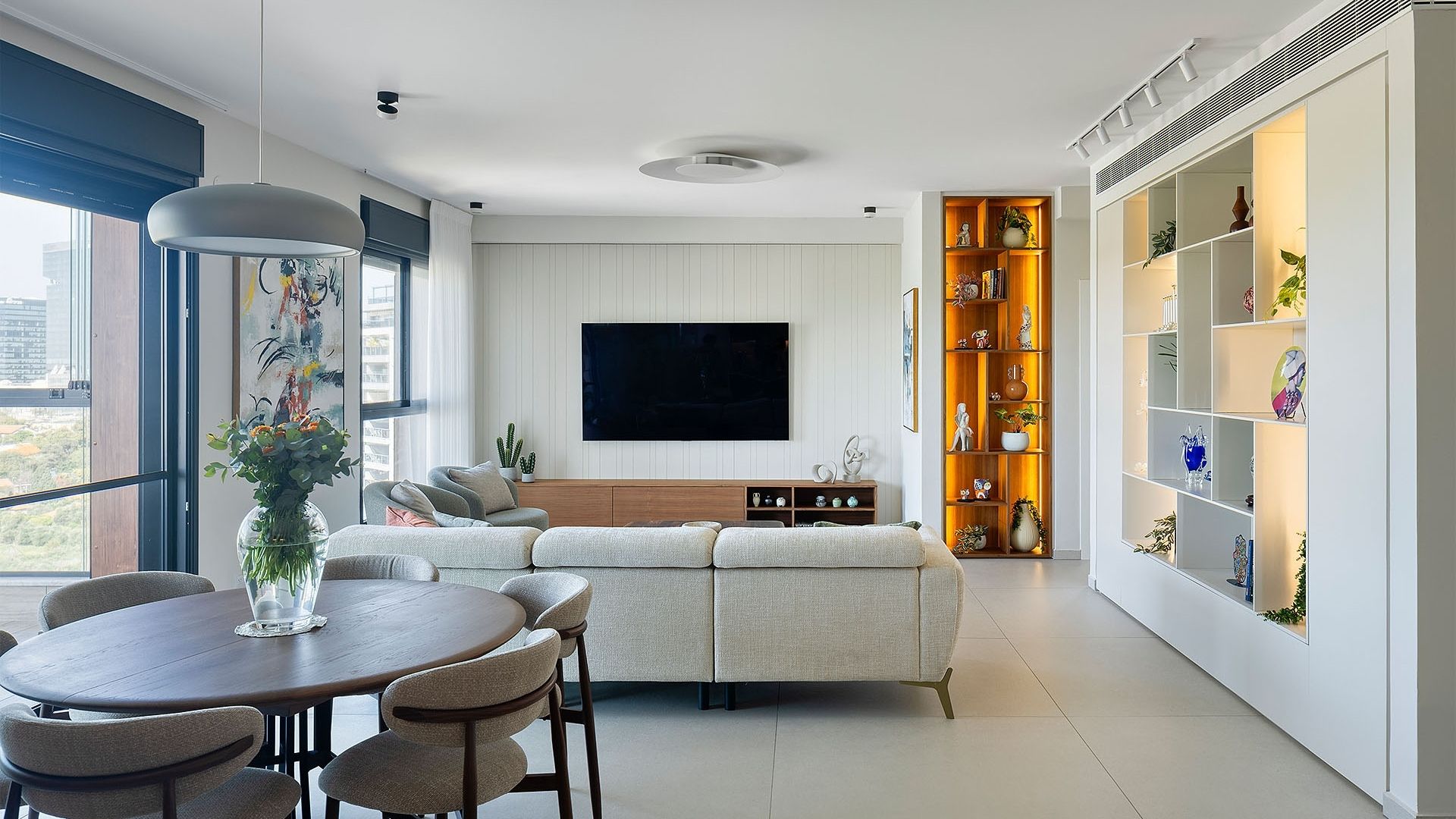 דף הבית » נגרות בהתאמה אישית » זוג ספריות נוי שקועות בסלון | עיצוב: ריקי קרקואר | צילום: מקס דופלי