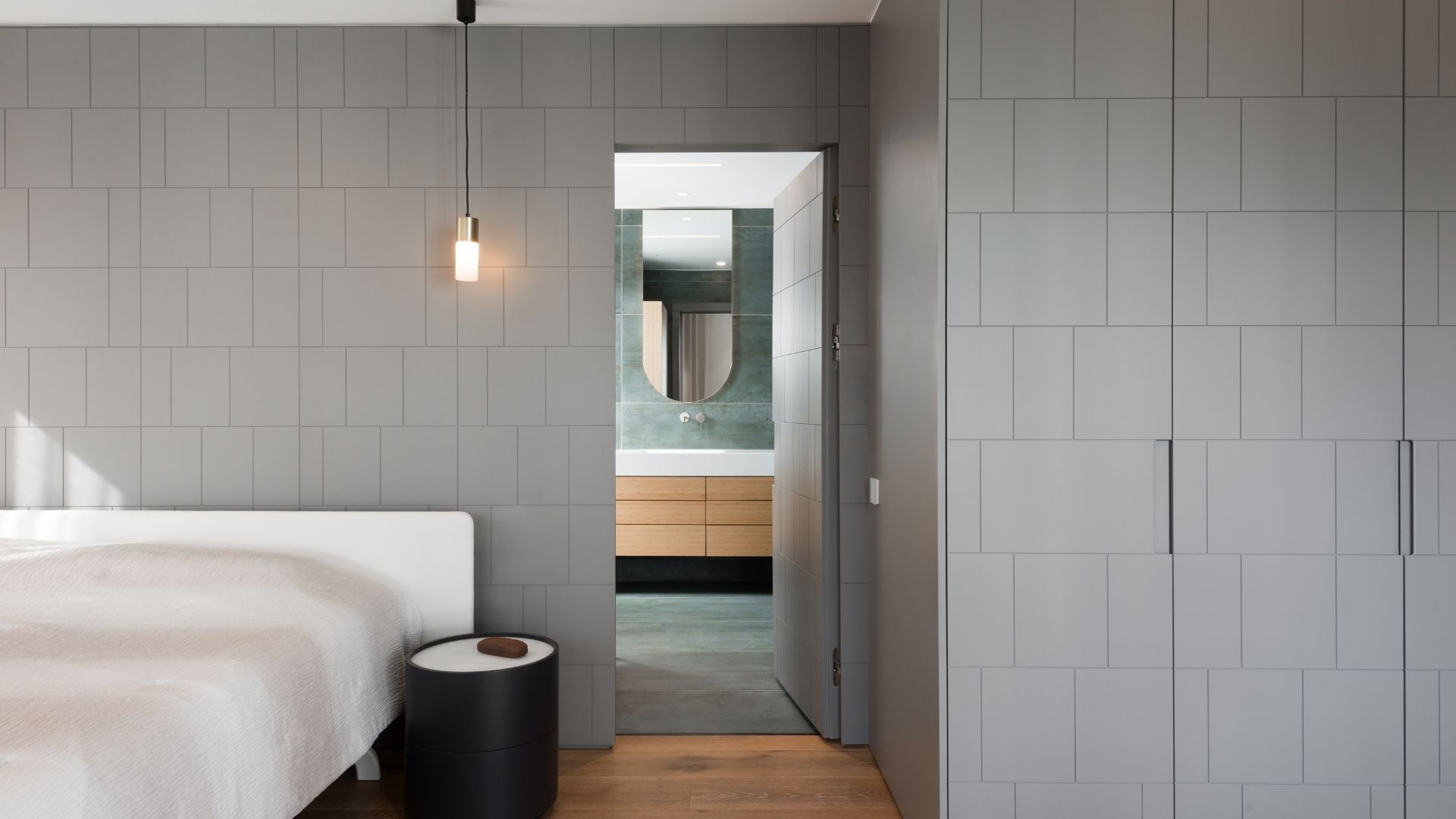 דף הבית » נגרות בהתאמה אישית » חיפוי קיר בגוון אפור עם צבע בתנור | עיצוב: סטודיו בוכהלטר | צילום: רגב כלף