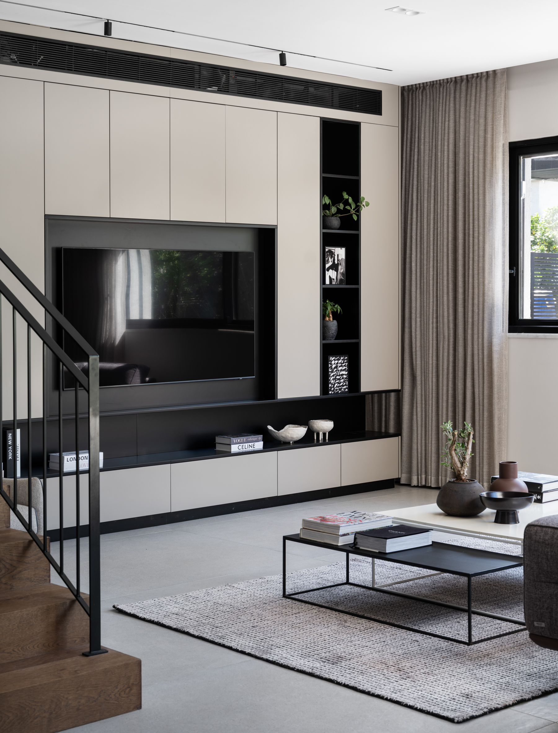 דף הבית » נגרות בהתאמה אישית » חיפוי עץ לקיר » קיר כוח אפור לסלון | עיצוב: רחלי בן אבי | צילום: אלון ברהום